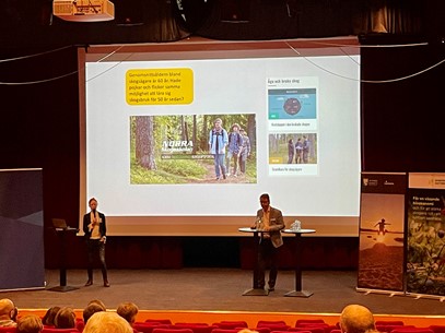Bland talarna fanns Helena Österlind, Västerbottens regionala skogsprogram, och Pär Lärkeryd, Norra skog, som tillsammans pratade under rubriken ”Jämställdhet – en förutsättning för morgondagens levande landsbygd” (bilden). De berättade om hur jämställdhetsfrågor hjälper till att driva samhällsutvecklingen, att en inbjudande värdegrund är något av det viktigaste för regional utveckling, och att vi måste tänka annorlunda om vi ska klara långsiktig hållbarhet.