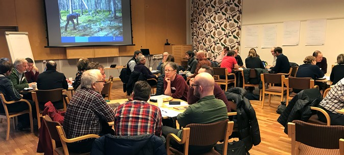 28 februari 2020För att samla och stärka kunskapen om naturvårdsbränningars effekter på renbetet bjöd Länsstyrelsen i Västerbottens län in till ett seminarium i Umeå den 5 februari. Dagen fylldes av olika föredrag och många diskussioner om skogsbrandshistoria, rennäringen och naturvårdsbränning, kompensationsåtgärder och hur man löser knutarna kring långsiktig nytta kontra kortsiktigt behov för naturvård och rennäring. Närmare 40 personer från olika samebyar, länsstyrelser från de norra länen inom EU-projektet Life Taiga, föreläsare från flera universitet, representanter och föreläsare från Sàmiid Riikkasarvi och representanter från skogsbolag samlades på Folkets hus i Umeå. Anders Esselin, processledare Skogsprogram Västerbotten, modererade dagen.