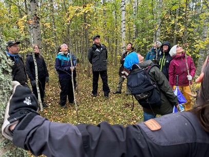 29 september 2023Vad är egentligen schackrutehuggning och hur kan man restaurera en lövskog? Och vad är poängen med sådana åtgärder? Det var frågor på agendan när programrådet för Västerbottens regionala skogsprogram samlades för en exkursion i närheten av Umeå den 25 september. Trots att vädret stundtals var lite kärvt med både regn och blåst deltog 18 personer. På det hela taget blev det en bra eftermiddag med intressanta presentationer, kluriga frågor, många diskussioner och en del skratt.