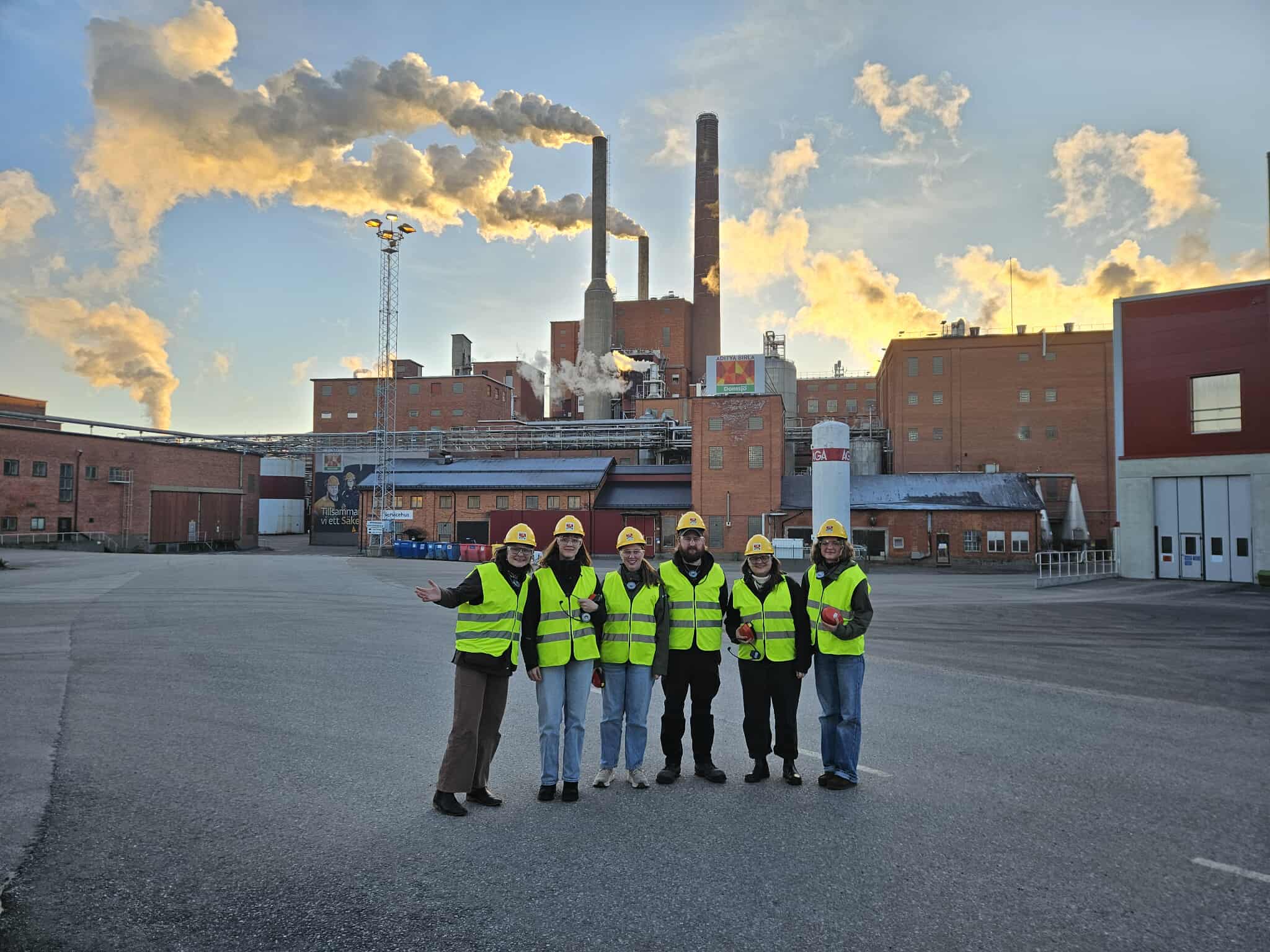 21 november 2025Fredagen den 14 november åkte vi till Domsjöfabriken i Örnsköldsvik. Domsjöfabriken är en sulfitanläggning som framställer cellulosa, bioetanol och lignin från barrträd. När vi kom fram började vi med en säkerhetsgenomgång och fick utrustning som reflexväst, skyddsglasögon, hjälm, andningsmask och hörselutrustning.